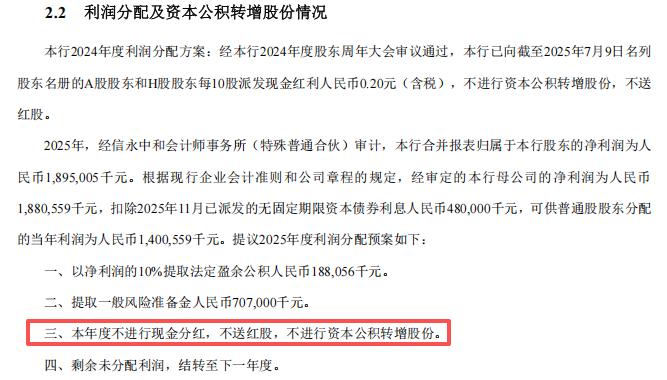 对于一家账面仍在盈利的上市银行而言,选择“零分红”通常释放出两个信号:一是内部现金流趋紧,亟需通过留存利润补充核心一级资本以应对监管压力;二是管理层对潜在资产质量风险心存戒备,急需储备“余粮”以备未来坏账核销之需。