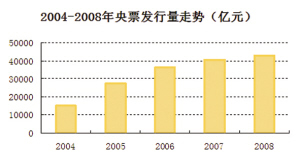 不过,央票发行量增速却呈现加速下滑的态势。2004-2007年,年度央票发行量从1.52万亿元逐渐提升到4.06万亿元,但2005-2008年发行量的年增速却从逾81%快速下降至6%以下。分析人士预计,由于经济形势发生变化,2009年央票发行量将会大幅减少。