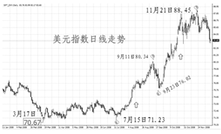 随着次贷危机演变为更大规模的金融危机,甚至逐渐波及实体经济,按常理美元应该走弱。可事实上在最近的危机风暴中,美元不但没有走弱,从今年3月起美元逐渐走强。尤其7月中旬,大部分金融市场波动剧烈,美元和日元大幅升值,非美货币在经历了7年多的牛市后,短时间大幅跳水,例如:英镑兑美元汇率连续5个月下跌,抹去了过去5年多的涨幅;澳元则在短短的四个月不到跌幅达39%;纽约原油期货价格在不到5个月的时间,由最高147.27美元/桶下跌至40.50美元/桶,跌幅高达72.50%等等。