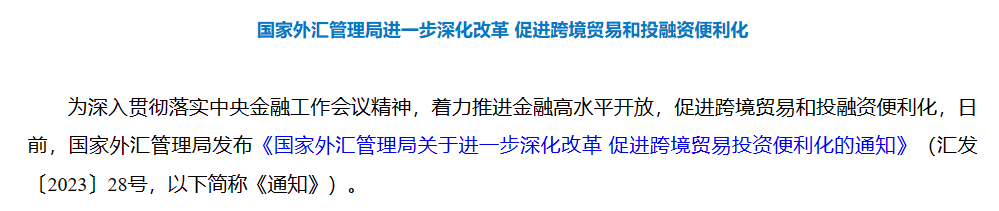 国家外汇管理局网站12月8日消息,国家外汇管理局日前发布《国家外汇管理局关于进一步深化改革促进跨境贸易投资便利化的通知》。