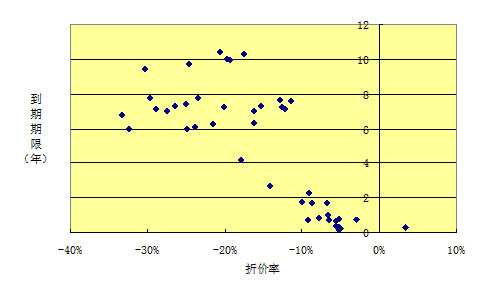 直接的证明就是封闭式基金的折价率期限结构:虽然封闭式基金总体折价率在降低,但是折价率的期限结构仍相当明显。将要到期的封闭式基金,随着到期日的临近,折价率逐渐降低。而到期日在6年以上的封闭式基金,则仍然保持着相当高的折价交易状态(图1)。也就是说,投资者仍然认为到期日远的封闭式基金价值不易实现。从这个角度来说,封闭式基金的价值挖掘仍然并不彻底。