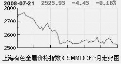 上周SMMI高位下滑,SMMI从周初的2572.33下滑至周末的2528.36,下跌1.71%,其中跌幅高于SMMI的金属有锌、镍、铝、铅和锡虽表现上升态势,却因幅度有限和市场的低份额而无力扭转SMMI的下跌态势。