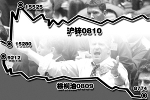 值得注意的是,境外市场隔夜农产品期货价格却出现止跌反弹迹象。其中CBOT隔夜8月大豆收盘1400.25美分,上涨1.5美分。场内交易商表示,继前两周暴跌之后,本周初市场继续盘整,由于天气担忧支撑大豆期价反弹,吸引交易商买盘。此外,国内工业品期货昨日整体逞强。上海期货交易所锌和天胶期货表现抢眼,其中沪锌期货指数上涨1.16%,沪胶指数上涨0.60%。沪锌主力0810合约上涨180元/吨,至15435元/吨报收。另外,虽然收盘时微跌,但铜铝等品种早盘表现强劲。