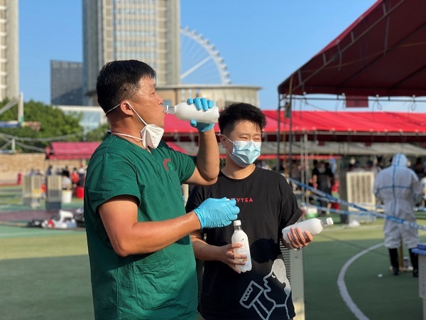 图注:9月16日,喜茶向厦门22个核酸采样点工作人员共计赠送气泡水180箱