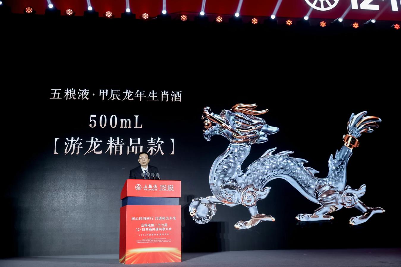 文传千载,酒承万象。大会还发布了“2024五粮液甲辰龙年生肖酒”,中国白酒大师、五粮液股份公司技术总顾问赵东对该生肖酒内涵文化、极致工艺、匠心品质、尊享价值等进行了阐释,这款蕴含着中华民族优秀传统文化智慧的匠心之作必将满载和美五粮诚挚祝愿,杯酒礼敬全球龙的传人。
