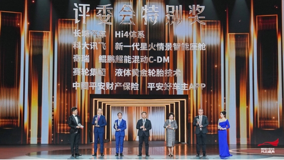 第四届《中国汽车风云盛典》由中央广播电视总台主办、总台财经节目中心特别策划。本届盛典首次设立汽车产业供应链相关技术奖项,科大讯飞新一代星火情景智能座舱在众多报名项目中脱颖而出,入围10强;并在晋级答辩中表现优异,最终获评评委会特别奖。