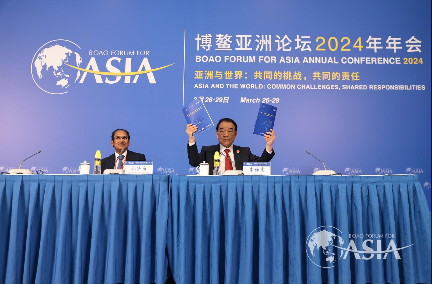 3月26日,博鳌亚洲论坛2024年年会首场新闻发布会在海南博鳌举行。会上,博鳌亚洲论坛秘书长李保东,面向来自60多个国家和地区的近2000名代表和来自约40个国家和地区的1100余名记者,重磅发布本届论坛的两本旗舰报告。一本是关于亚洲经济前景及一体化进程的传统旗舰报告;另一本是博鳌论坛连续第四年发布的可持续发展报告,今年的选题是通过零碳电力建设促进绿色发展。