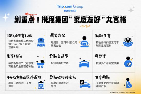 “我们始终认为,对于企业而言,最重要的是员工,对于员工而言,最重要的是家人。公司也一直在思考如何创造更好的环境,通过多元化的福利保障,助力员工实现事业和家庭的双赢。在过去的八年里,公司陆续推出了混合办公、辅助生育、生育补贴等10余项福利政策,带动携程成为一家女性友好、生育友好等家庭友好的企业,让员工更无后顾之忧,信心满满投入到工作中。”携程集团ESG事务相关负责人表示。