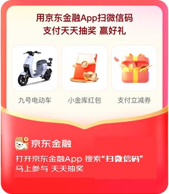 不管是逛菜市场、买冷饮雪糕、还是夜市吃烧烤、海鲜,用户只需用京东金融App扫微信收款码支付,天天都有减免;完成支付还可参与每日抽奖,100%中奖,奖品包括九号电动车、黄金豆、现金优惠券等。
