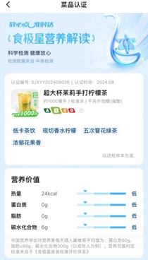 相比预包装饮品,现制饮品因为涉及杯型、糖分和配料等细分规格不同,单款饮品会涉及不同热量和标识展示。此次饿了么平台实现了动态展示功能,能够更为精准地提供营养选择参考。例如,乐乐茶的大橘满满,正常冰、不额外加糖为B级,正常冰、正常糖则为C级。同时,页面还可以展示包含热量、蛋白质、脂肪、碳水化合物含量等在内的营养成分。
