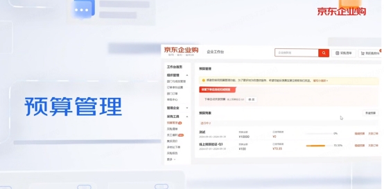 例如,在预算管理环节,京东企业购上线了帮助企业合理规划预算分布、过程监控成本支出的管理工具,可通过预算项及预警值的配置,实时监控预算消耗进度,有效把控采购支出。
