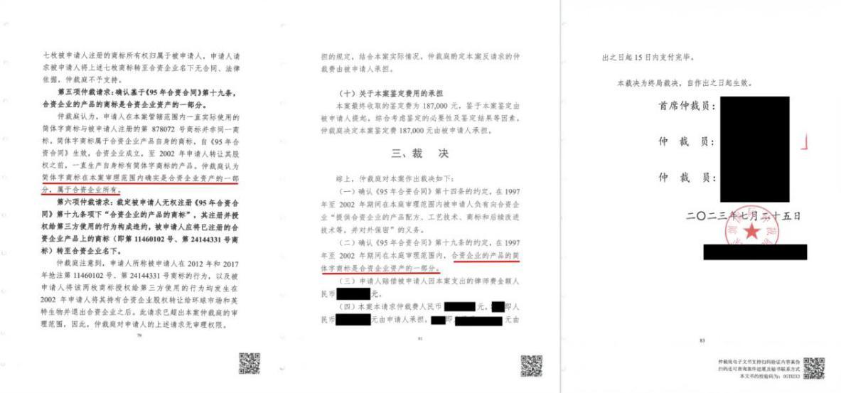 深圳国际仲裁院裁决“合资企业的产品的简体字商标是合资公司资产的一部分”
