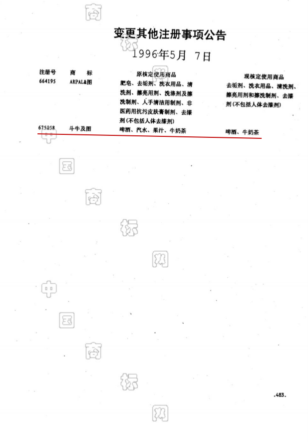 深圳中浩购买斗牛图案商标后变更了斗牛及图商标使用范围