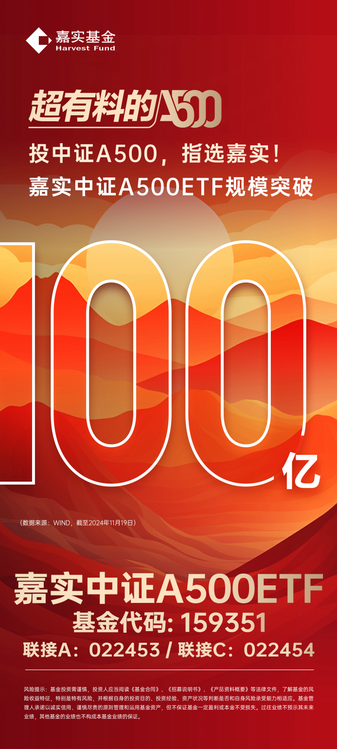 又见百亿宽基!嘉实中证A500ETF(159351)规模突破百亿