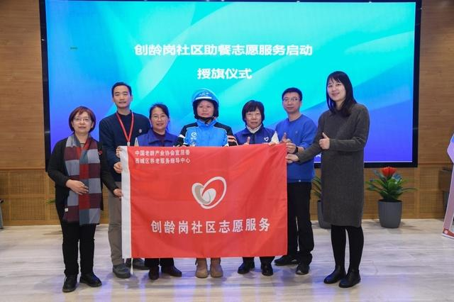 在此次启动仪式上,中国老龄产业协会老年宜居养生专业委员会与西城区养老服务指导中心,共同组建创龄岗社区助餐志愿者服务队。这支志愿队伍由饿了么骑手与创龄岗老年志愿者共同组成,将一起深入社区开展志愿工作,帮助老年人跨越“数字鸿沟”,更好地享受老年助餐服务。