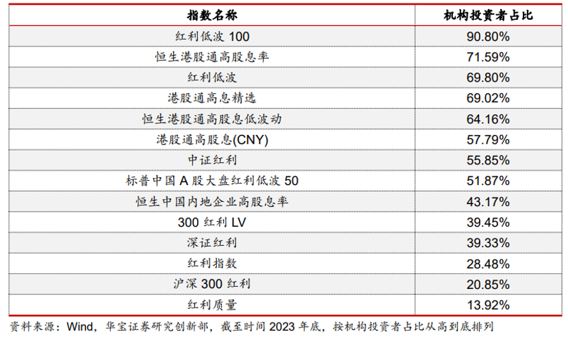 中证红利低波动100指数能涨抗跌的属性深得机构投资者青睐。据华宝证券研报数据,截至2023年底,红利低波100指数是机构最喜欢投资的指数,机构投资者占比高达90.8%,这也是仅有的一只机构投资者占比超90%的红利类指数。
