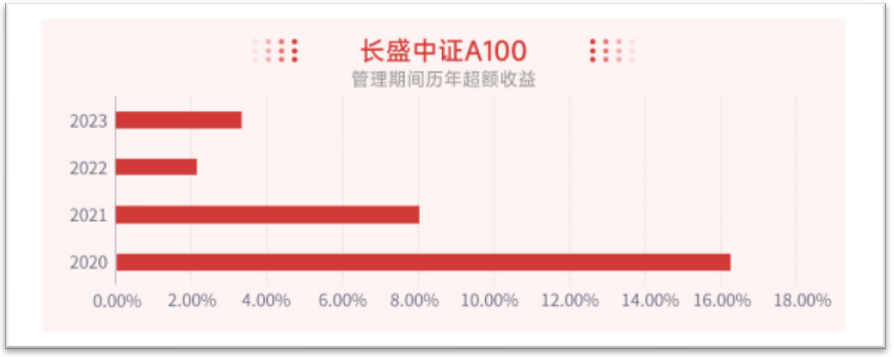 陈亘斯在管长盛中证A100指数基金历年超额收益