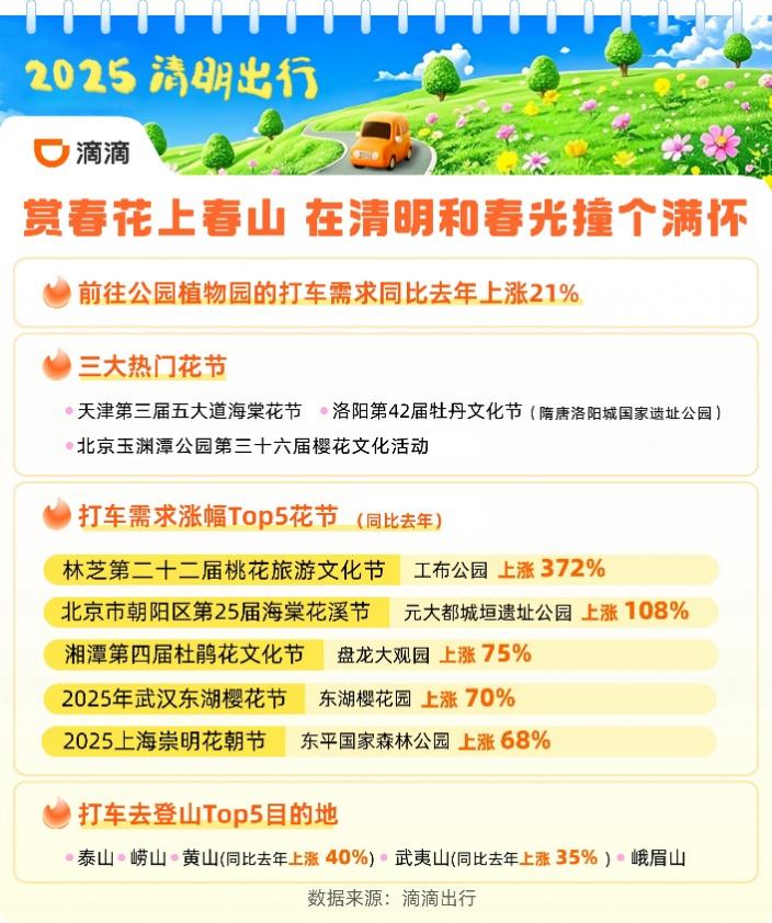 赏春花打车需求上涨21% 泰山领衔多地上春山热潮