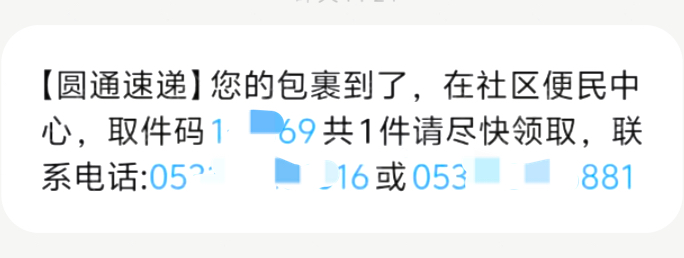 (图说:诈骗分子给用户发送的快递取件码信息)