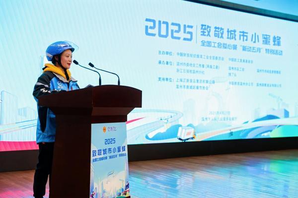 4月27日,饿了么联合中国财贸轻纺烟草工会、中国职工发展基金会及正新鸡排等知名餐饮品牌,在浙江温州共同发起“致敬城市小蜜蜂”全国工会爱心餐“新动五月”活动。