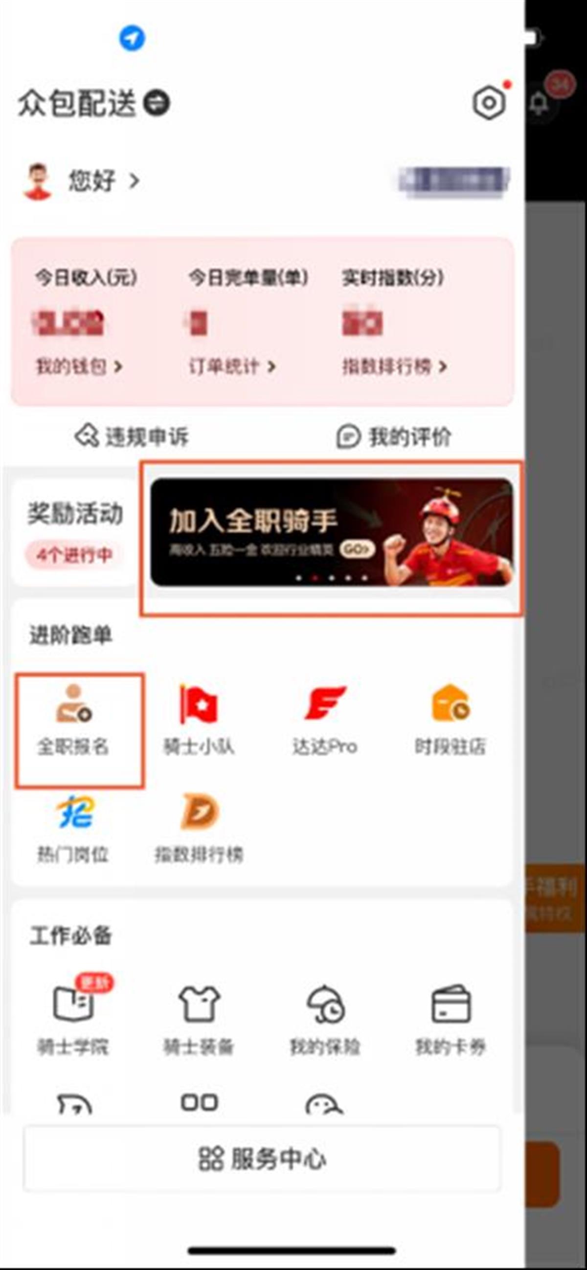 1、下载【达达秒送骑士】APP,在侧边栏找到【加入全职骑手】入口报名。