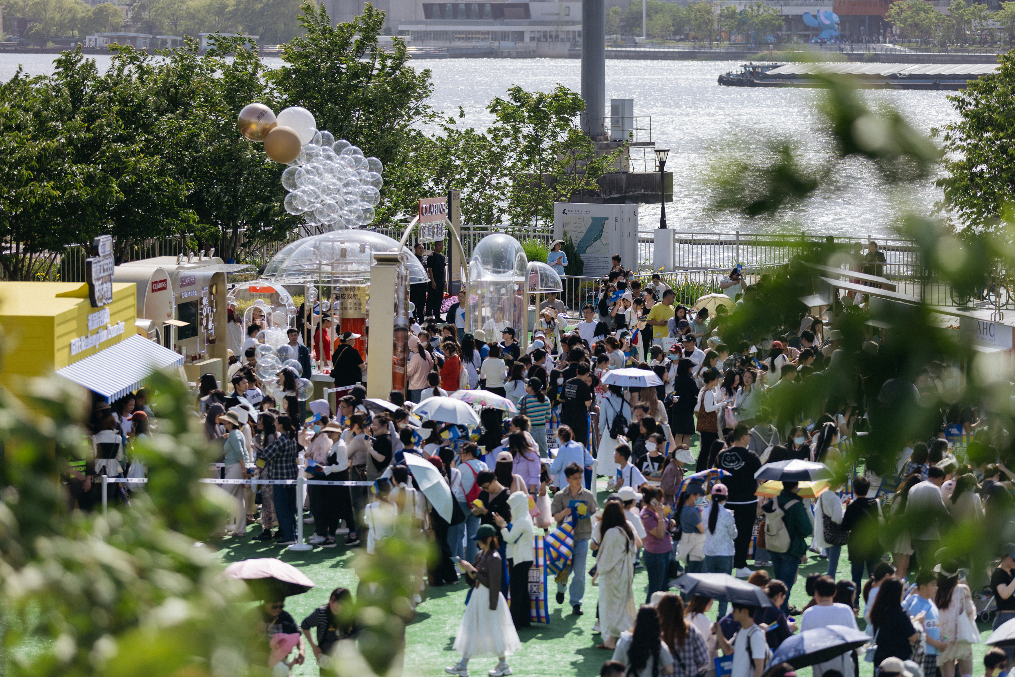 5月1日,在前滩友城公园里,由美腕打造的“所有女生的快乐市集·‘李’想街区”游客络绎不绝,市民争相在此和互动装置打卡拍照,现场试用美妆产品,参与扭蛋活动。这片时髦的“‘李’想街区”为五一假期的上海国际花展浦东新区分会场注入了别样精彩。