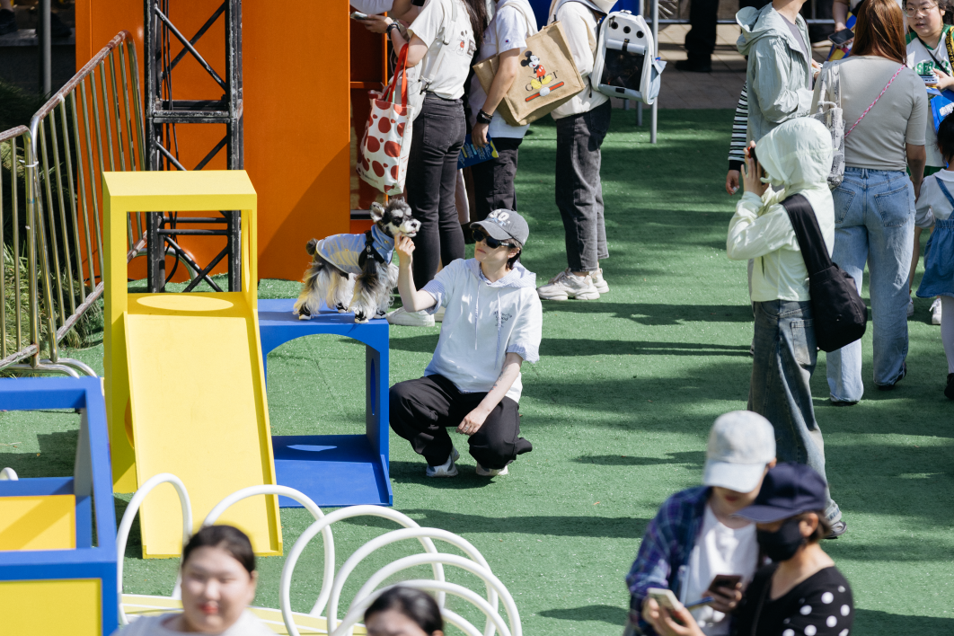 在人气最高的萌宠乐园区域,不少市民游客带着爱宠参与其中。现场一座吸睛的艺术装置内藏玄机。该装置采用环保材料精心制作,上面的萌宠小窝都可独立拆卸重组,来到活动现场的“毛孩子”可以钻进高低参差的小窝里游玩探索。而在活动结束后,这40个小窝也将开启新的使命——经过专业清洗消毒后,它们会被捐赠给“上海领养日”,用于流浪猫狗的救助。