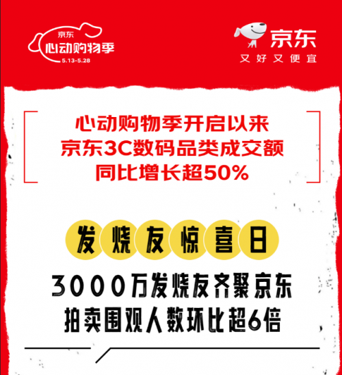 心动购物季3C数码成交额增长超50% 3000万发烧友涌入京东“惊喜日”
