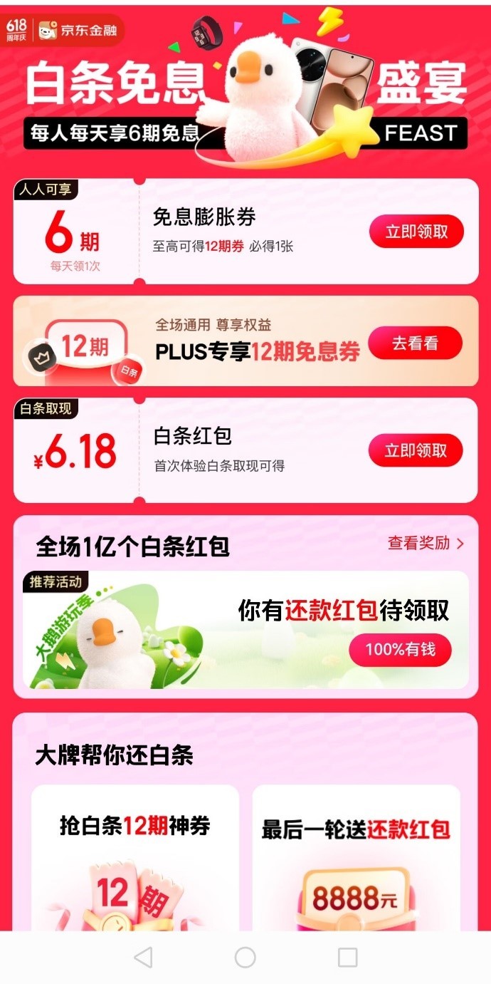 京东:京东白条618期间有数千万用户单人领超20张免息券