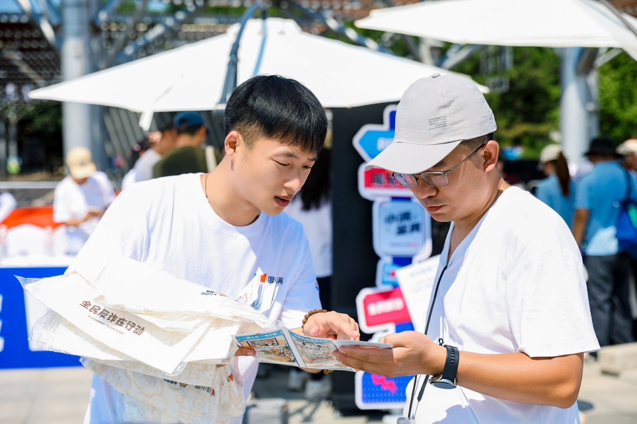 (图为度小满工作人员现场介绍反诈宣传手册)