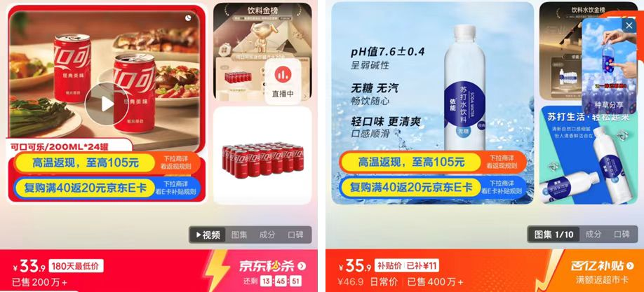 除此之外,消费者购买参与活动的水饮商品后,再次购买同款或同品类商品时,还可享受一定的返还优惠。比如,消费者首单完成后购买指定品类商品订单金额大于40元,可申请E卡补贴20元,同一用户自然月内可申请4次复购险服务,最高可享受80元补贴。