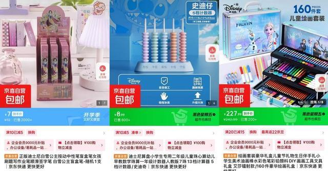 在文具领域,针对小学生对可爱文具的偏好及要求,京喜推出的迪士尼白雪公主中性笔,凭借可爱外观设计,成为小学生喜爱的单品;迪士尼算盘采用一键快速复位设计,为小学生数学学习提供实用助力;冰雪奇缘160件套儿童绘画套装,不仅画材品类丰富不重复、满足学生多元创作需求,其铝制手提箱设计还能方便收纳、节省空间,深受众多孩子及家长喜爱。