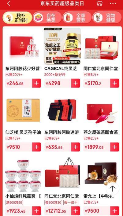 针对熬夜、压力大、体虚畏寒等典型场景,京东买药汇聚燕窝、阿胶、参茸、养生茶饮和灵芝孢子粉等高端滋补品,同时引入辅酶Q10、鱼油、抗氧化胶囊等现代营养制剂,满足年轻人“一边耗一边补”“精准养护”的需求。