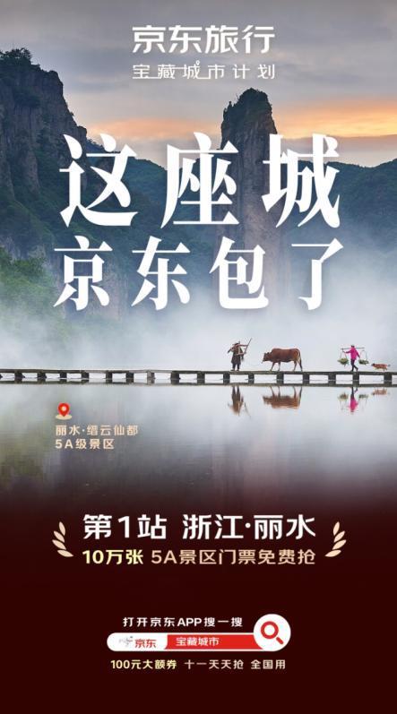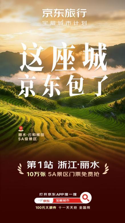 “宝藏城市”计划首站,落在被誉为“中国生态第一市”的浙江丽水,正是看中了这座“宝藏小城”所积淀的生态价值、文化魅力与发展潜力。以此为契机,京东旅行为丽水打造了“双节黄金周”活动,从9月16日至10月8日,为游客送上多重福利:用户可在京东App每日上午10点免费限量领取缙云仙都、云和梯田两大5A景区门票,共计10万张。