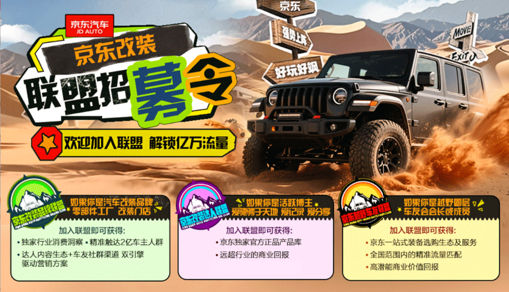对于越野玩家而言,“找装备靠熟人、组活动碰运气、遇故障干着急”曾是玩车常态。如今,京东汽车同步成立“京东越野车友联盟”,以“打造线上越野圣地,解锁全域玩车生态”为目标,致力于为越野爱好者构建集交流、服务与体验于一体的综合性平台。针对越野玩家在装备选购、活动组织、应急保障等环节的实际痛点,联盟将接入京东一站式生态资源,覆盖专业改装装备、赛事级车辆保养、24小时救援服务以及酒旅出行等全链路支持。通过构建高粘性的互动生态,加速越野文化从圈层兴趣走向大众生活,为整个改装细分领域注入新一轮增长动能。