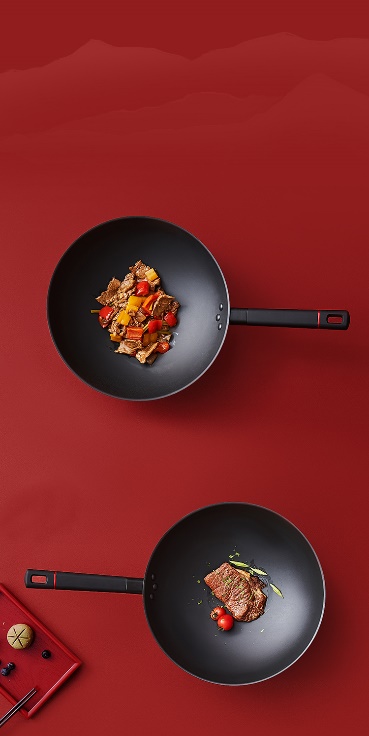 “鸿运当头”系列以“以礼为器·饪见不凡”为理念,将中国传统美学与现代工业设计深度融合。锅盖顶珠设计灵感源自古代官帽造型,与手柄处红环细节呼应,中国红色彩既承载吉祥寓意,又体现了新中式美学特色。锅体采用近99.9%高纯精铁及钛熔覆技术,独特的曲线和圆润的边缘同样符合人体工程学原理,使锅具兼顾耐用性与烹饪效率,为用户创造全新烹饪体验。