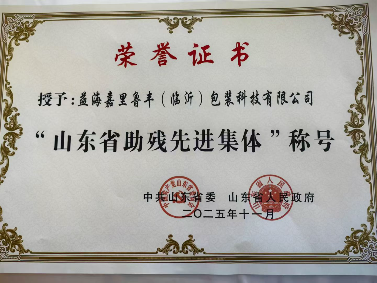 益海嘉里鲁丰(临沂)包装科技有限公司荣获“省级助残先进集体”称号