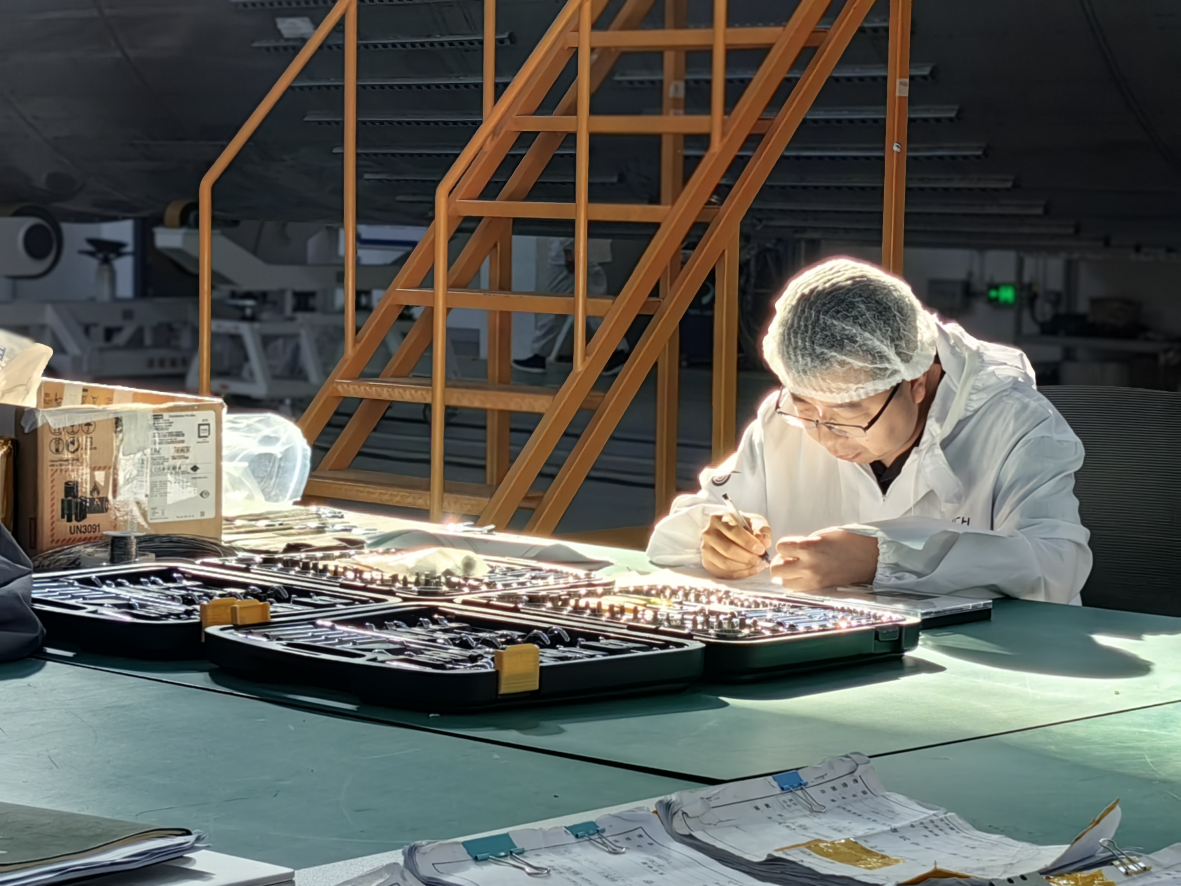 箭元科技科研人员在总装测试实验室进行零件的检查和测试