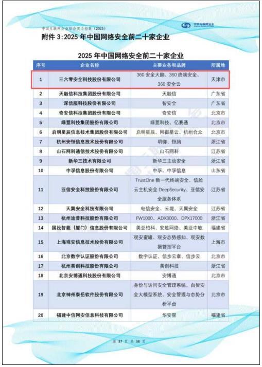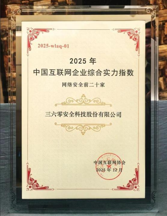 12月29日,由中国互联网协会举办的《中国互联网企业综合实力指数(2025)》发布会圆满落幕。会上,备受行业关注的“2025年中国网络安全前二十家企业”榜单正式揭晓。360公司凭借在安全领域的技术突破、全场景产品服务覆盖及深度行业实践,实力斩获网络安全产业第一,强势领跑行业发展!