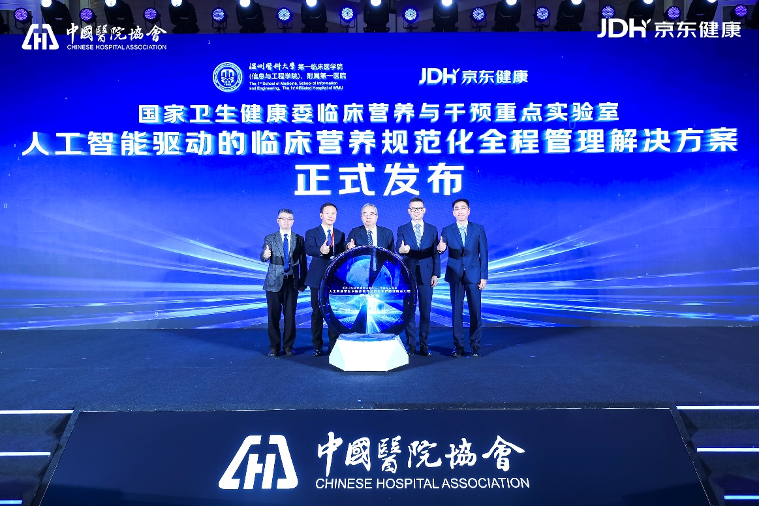 会上,京东健康联合温州医科大学附属第一医院&国家卫生健康委临床营养与干预重点实验室,共同发布“人工智能驱动的临床营养规范化全程管理解决方案”。