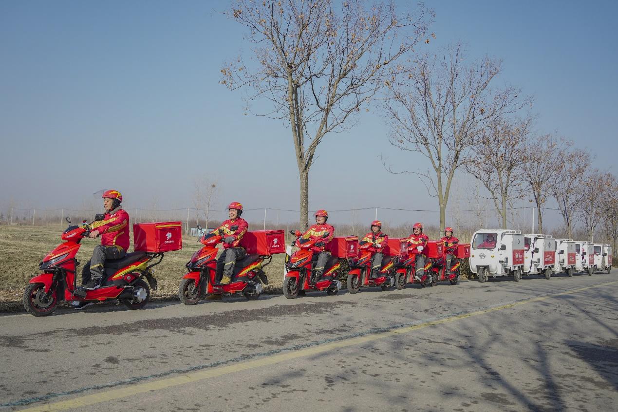 三秦都市报-三秦网讯(记者 王媚)1月28日上午,在江苏省宿迁市来龙镇光明村“我给老家送年货”活动现场,一支由京东全职骑手、快递小哥、家政姐姐自发组成的“混编”服务车队驶入村里,引起众多村民围观。