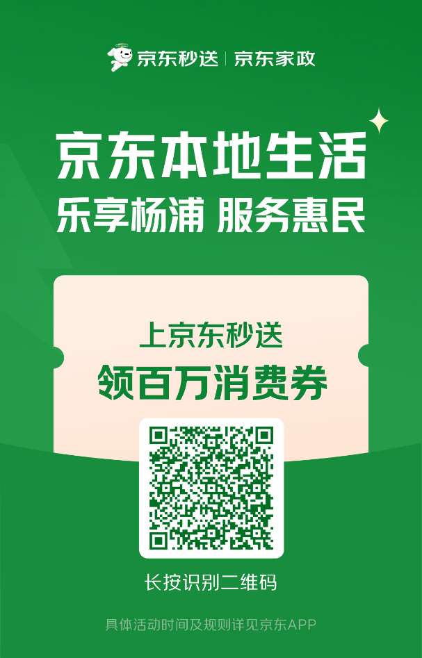 随着农历新年的临近,上海市杨浦区迎来了一波新春消费热潮。为提升消费品质,进一步激发春节消费热情,京东本地生活进上海,首次与上海杨浦区合作,推出了涵盖到店团购餐饮、到店自提、家政服务等多个领域的消费券活动。2月10日至3月9日,每日10点-20点分6轮发放,市民只需上京东APP首页/秒送频道页,搜索“杨浦消费券”或“ 乐享杨浦”,即可领取百万元消费券。