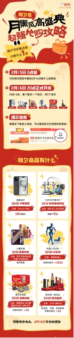 除夕大戏即将开场,京东年货节再度带来重磅福利加码!2月16日除夕夜晚8点,京东将开启“月黑风高”超级盛典,以超值福利与广大消费者一起共度新春。在当晚8点至凌晨0点,五大整点都有超值好物轮番上线。216元惊爆价的iPhone 15 手机、限量马年茅台、2026元的神秘大牌机器人等惊喜好礼等你入手。目前活动现已开启预约,用户打开京东APP搜索“月黑风高”,即可查看商品抢购信息,预约心仪商品。