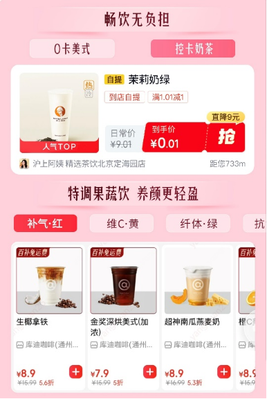 在服务上,京东不仅提供“一杯即送”外卖送到家服务,也提供“自提更省”的体验,购买双杯饮品到店自提还可再减一元,让闺蜜小聚的快乐加倍。