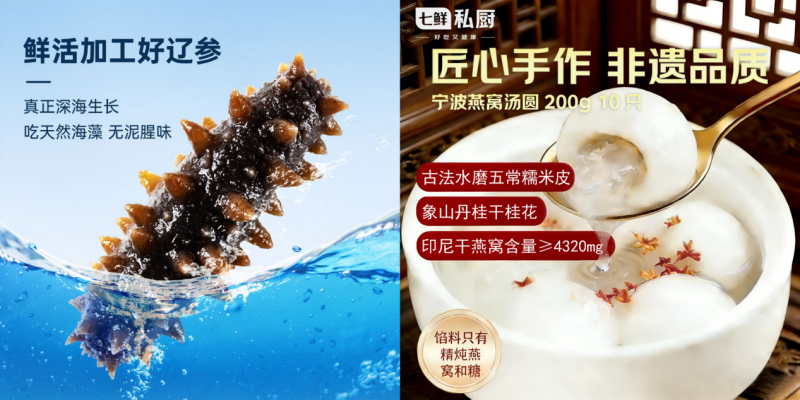 春天不仅是尝鲜的季节,更是滋补养生的好时候。作为今年春节期间的爆款,鲜京采大连即食海参精选大连纯净海域的优质刺参,最大程度保留了海参本真的营养与鲜美,开袋即食的便捷设计,让滋补变得简单,尤其适合赠予注重健康的女性长辈。七鲜私厨宁波燕窝汤圆则选用印尼干燕窝入馅,搭配传统宁波水磨皮,寓意“圆圆满满”,成为节日赠礼的不二之选。
