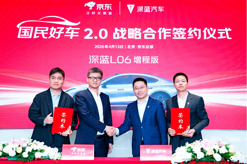 本报讯 (记者梁傲男)4月13日,京东汽车与深蓝汽车正式签署战略合作协议,双方宣布国民好车2.0正式锁定深蓝L06增程版,该车将在京东独家销售。目前,京东APP已经上线深蓝汽车官方旗舰店和深蓝汽车京东自营旗舰店,在京东APP搜索“国民好车”,即可预约试驾或预订新车,并享受专属小订权益。