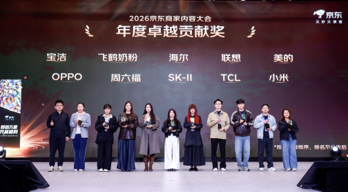 大会同期为品牌颁发2025年度内容生态奖项,海尔、联想、美的、OPPO、飞鹤、宝洁、周六福等获年度卓越贡献奖,爱他美、a2、富士达电动车、小牛电动等获年度突出贡献品牌奖,弗列加特、山下有松等获新锐品牌荣誉奖,AMD、海尔、汤臣倍健、五粮液、紫色花语等获年度AI直播先锋奖。