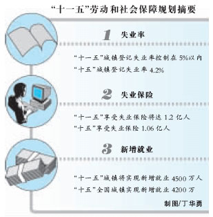 全国城镇实现新增就业4500万人,并能转移农业劳动力4500万人。昨日,国务院批转由劳动和社会保障部、国家发改委制定的劳动和社会保障事业发展“十一五”规划《纲要》(以下简称《纲要》)。