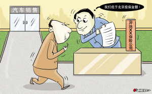 据法官介绍,一般车主在购买车辆时,销售公司都会向车主介绍包括办理车牌、车辆行驶证及保险在内的一条龙服务。销售公司通常会以比市场价格低的优惠条件来吸引车主选择由他们代办。所以使很多车主在无意的情况下购买了异地保险。异地保险公司为了能够拉到更多的业务,会选择将办公地点设在汽车销售店周边。“汽车销售员之所以极力推荐车主购买这些异地保险公司的交强险,是因为他们每促成一单业务,就可以得到保险公司一笔回扣。”一位长期从事保险业务的人士告诉记者。