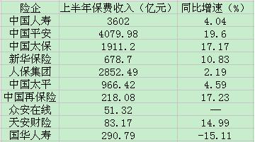 上市险企上半年保费:平安增速居首 国华人寿唯一下滑